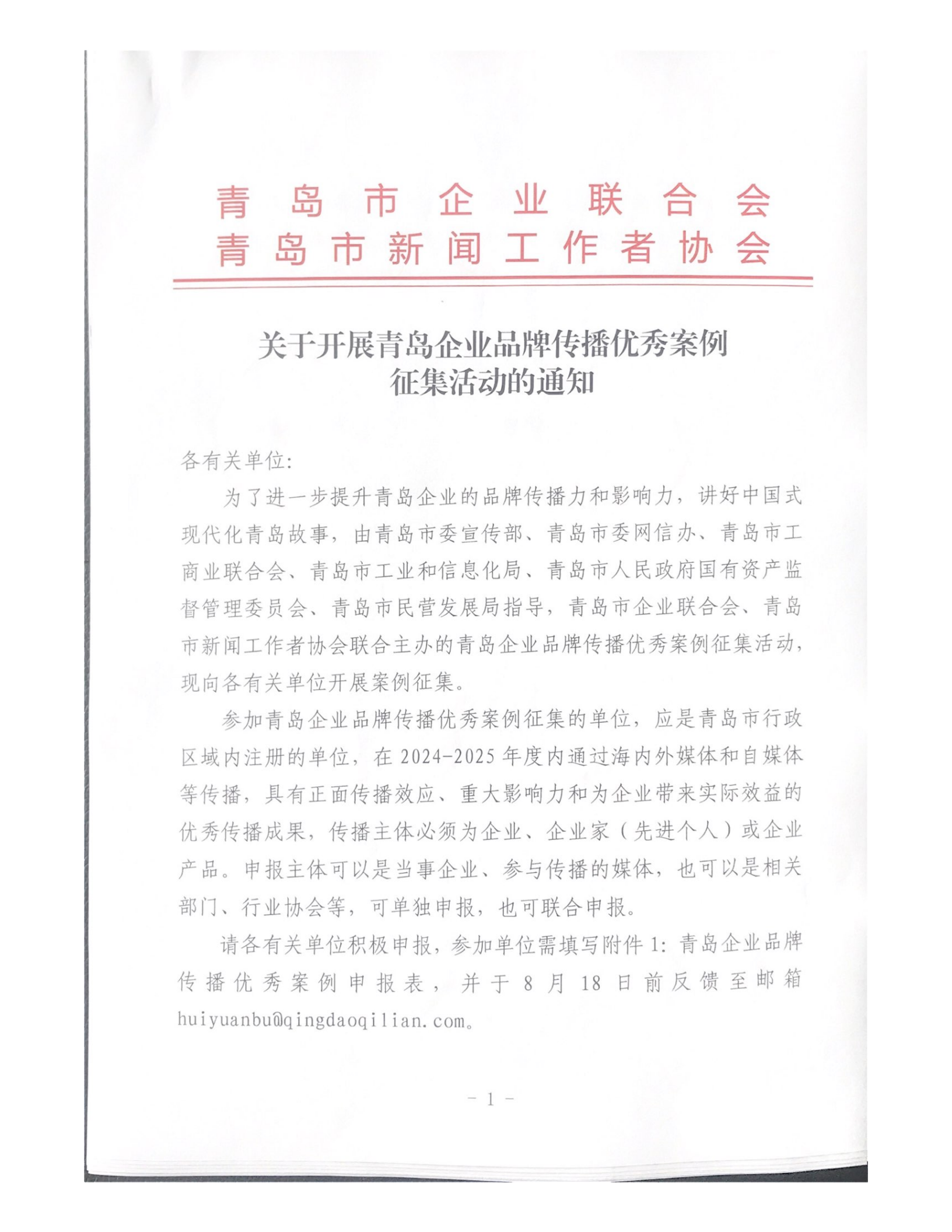 為深度挖掘我市“品牌之都”背后的精彩故事,廣泛傳播青島企業(yè)在品牌塑造與傳播領(lǐng)域的卓越實踐與創(chuàng)新智慧,助力青島品牌建設(shè)再攀高峰,青島市企業(yè)聯(lián)合會、青島市新聞工作者協(xié)會日前聯(lián)合向全市發(fā)出通知,啟動“青島企業(yè)品牌傳播優(yōu)秀案例”征集活動,誠邀全市相關(guān)單位踴躍參與,分享企業(yè)品牌傳播的精彩故事與豐碩成果!